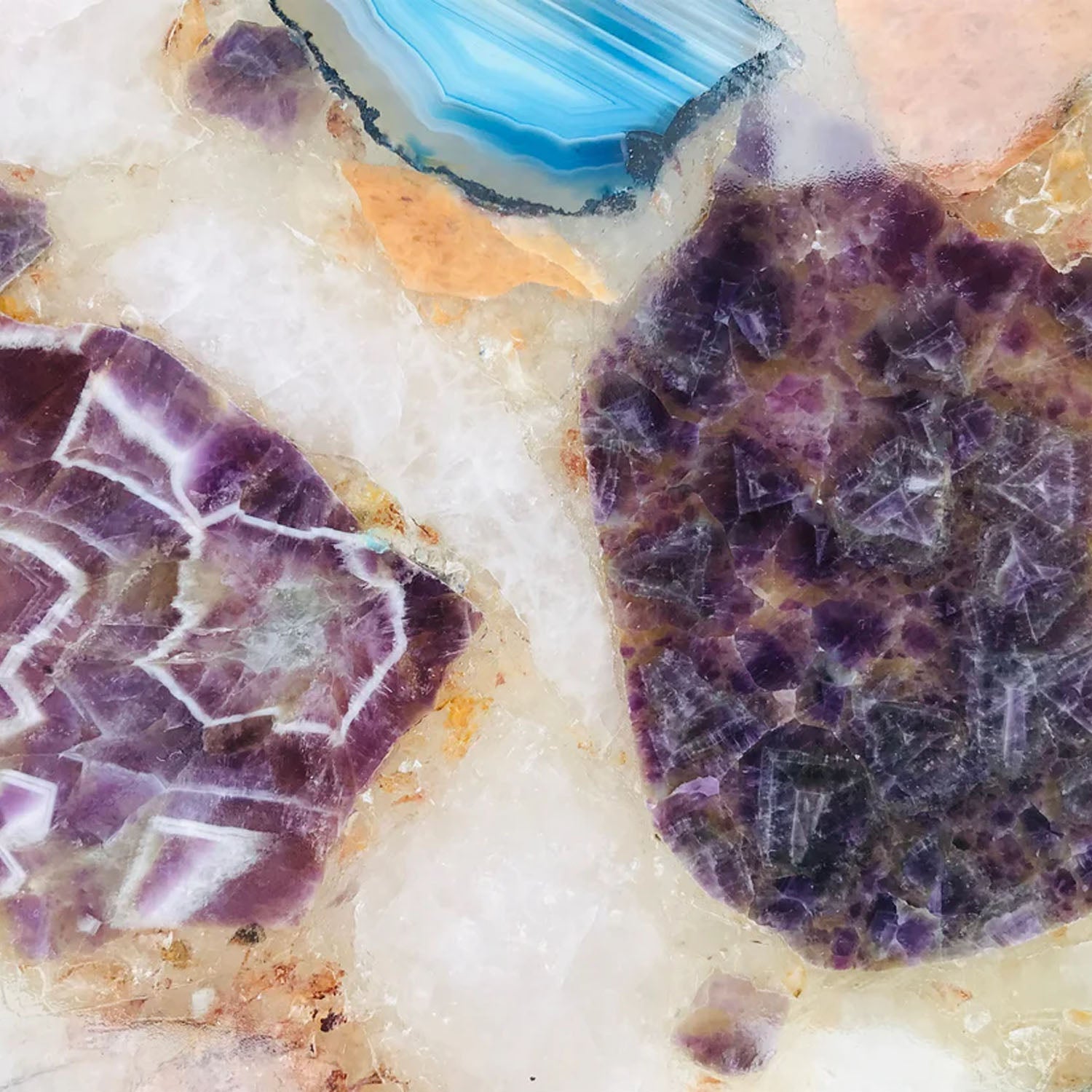 Colourful gemstones arranged in a 12" round circle, the edges of each piece are electroplated (not gold leaf or gilded, which may rub off) with beautiful thick metallic GOLD